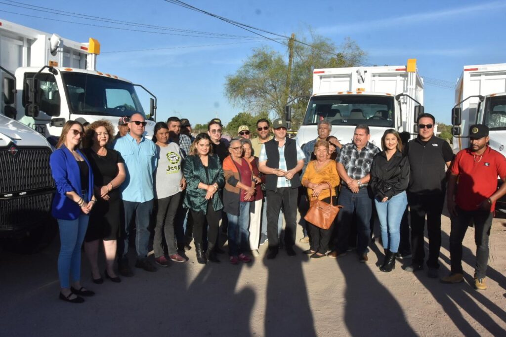 Cuatro nuevos vehículos para la recolección de basura en la ciudad, entregó el alcalde Jorge Alberto Elías Retes a la Secretaría de Servicios Públicos e Imagen Urbana, en un evento realizado ante residentes de la colonia Sonora, al oriente.