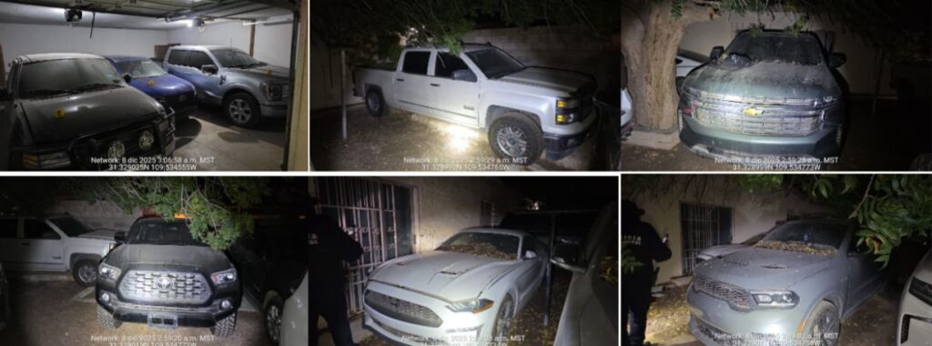La Mesa Estatal de Paz y Seguridad logró el aseguramiento de 24 vehículos, de los cuales 18 cuentan con reporte de robo en Estados Unidos, además de varias unidades con blindaje, entre ellas un vehículo tipo “monstruo”, debilitando de manera directa a las células criminales que operan en la región fronteriza.