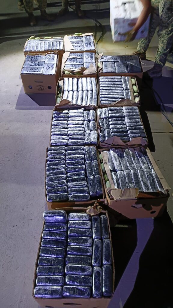 Durante una inspección a un tractocamión con ruta de procedencia San Blas, Nayarit, y destino Tijuana, Baja California, elementos de la Guardia Nacional detectaron inconsistencias en la caja seca mediante tecnología de Rayos Gama, por lo que se realizó una revisión manual que permitió localizar mil 877 paquetes de cocaína, con un peso aproximado superior a mil 800 kilogramos.