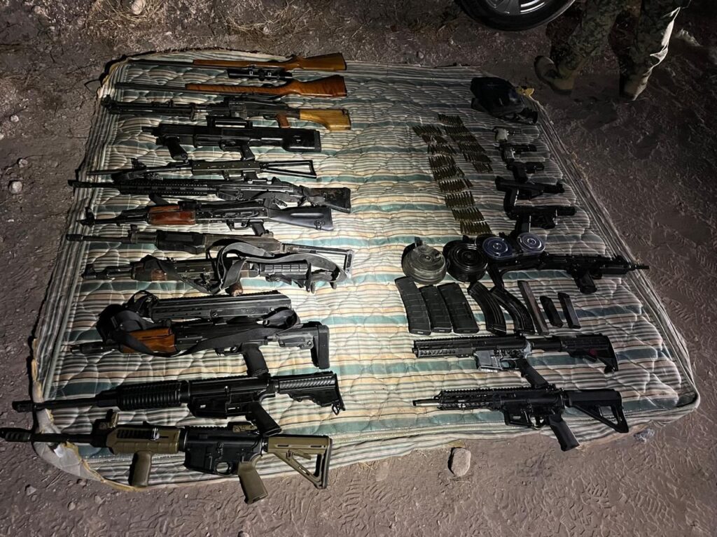 Como resultado de los trabajos coordinados de la Mesa Estatal de Seguridad, personal del Ejército Mexicano aseguró en el municipio de Navojoa un vehículo con reporte de robo vigente en los Estados Unidos, así como un importante arsenal de armas de alto poder.