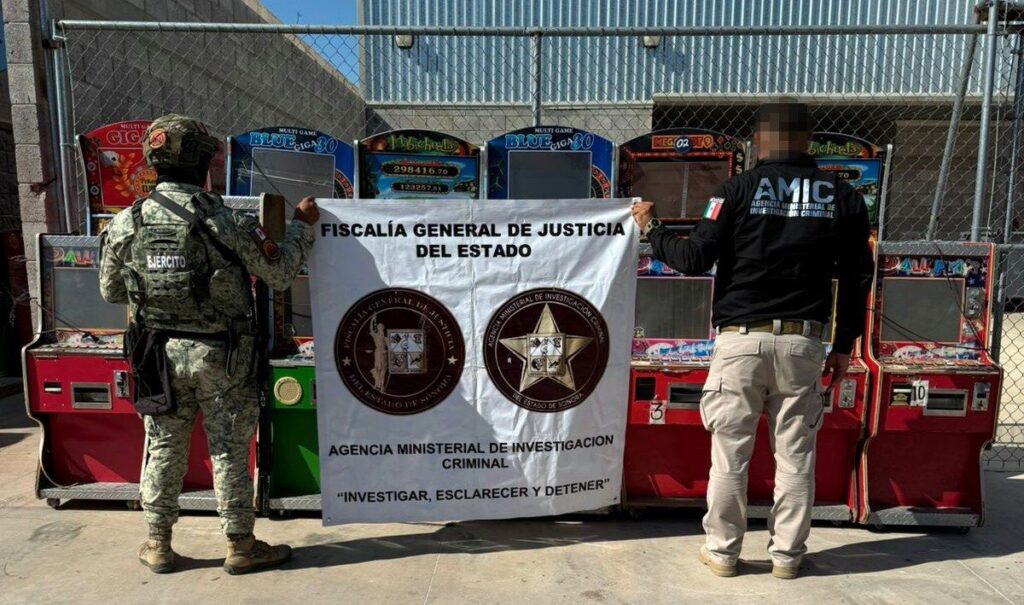 En operativo conjunto realizado por la Agencia Ministerial de Investigación Criminal (AMIC) y la Secretaría de la Defensa Nacional (Defensa), se cumplimentó una orden de cateo en un domicilio en Hermosillo, que derivó en el aseguramiento de 14 máquinas tragamonedas.