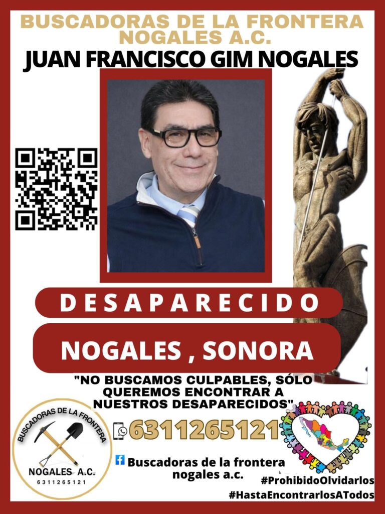 El colectivo Buscadoras de la Frontera Nogales lanzó un llamado de búsqueda de Juan Francisco Gim Nogales, actual alcalde de ese municipio fronterizo sonorense.