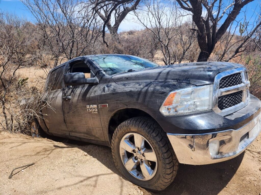 Los hechos se registraron el pasado 28 de mayo en un camino de terracería entre Sáric y Sásabe, en inmediaciones del cerro El Chile, cuando personal de DEFENSA detectó un vehículo Dodge Ram, modelo 2019, que emprendió la huida.