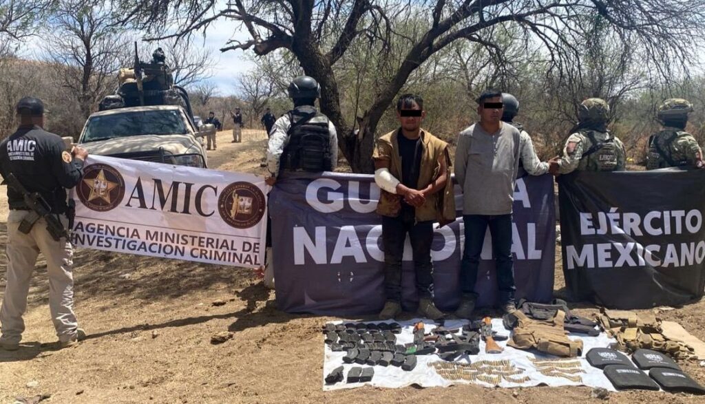 Como resultado de acciones de reconocimiento en zonas estratégicas del norte del Estado, efectivos de la Secretaría de la Defensa Nacional (Defensa), en coordinación con la Agencia Ministerial de Investigación Criminal (AMIC) y Guardia Nacional (GN), capturaron a dos sujetos en posesión de armas de fuego y cartuchos de alto poder, así como de un vehículo en Sáric.