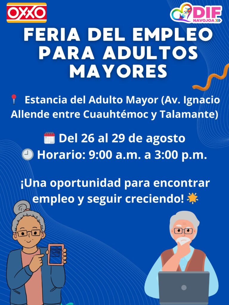 En el marco del Día del Abuelo se celebrará la Gran Semana del Adulto Mayor y este martes se llevará a cabo la Feria del Empleo para Adultos Mayores, organizada por el Sistema DIF Navojoa, en coordinación con tiendas OXXO, informó Luz Argel Gaxiola de Elías, presidenta de DIF Navojoa.