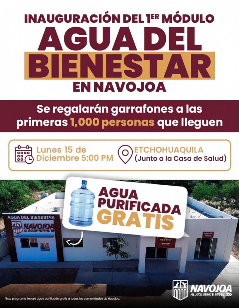 Navojoa será pionero en Sonora en poner en marcha el programa “Agua del Bienestar”, la cual consistirá en abrir purificadoras de agua gratuita para las familias de la zona rural.