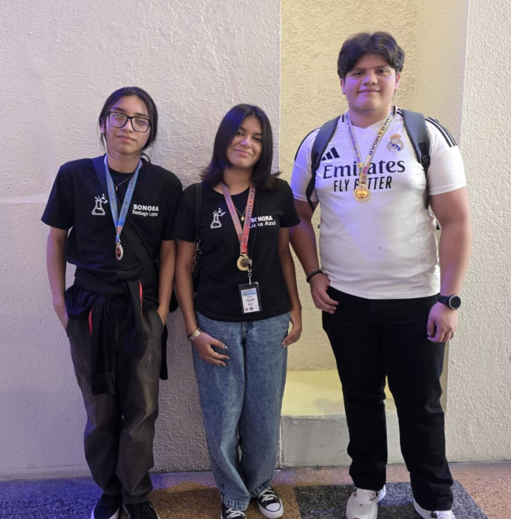 Los estudiantes Joaquín Emilio Rivas Menchaca, Santiago López Mendoza y Luna Azul Villegas Galaz, estudiantes del subsistema Colegio de Bachilleres del Estado de Sonora (Cobach), destacaron en la Olimpiada Nacional de Química al obtener medallas de oro, plata y bronce, respectivamente.