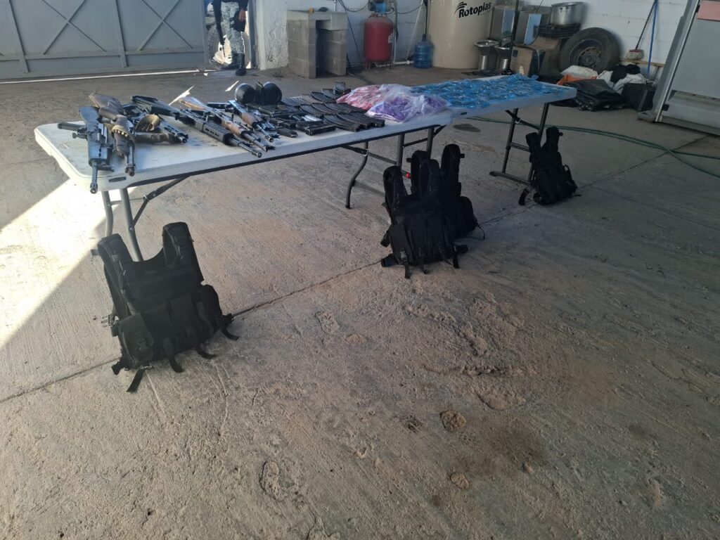 En el lugar también fueron asegurados cuatro chalecos tácticos, tres portacargadores y tres paquetes de pipas.