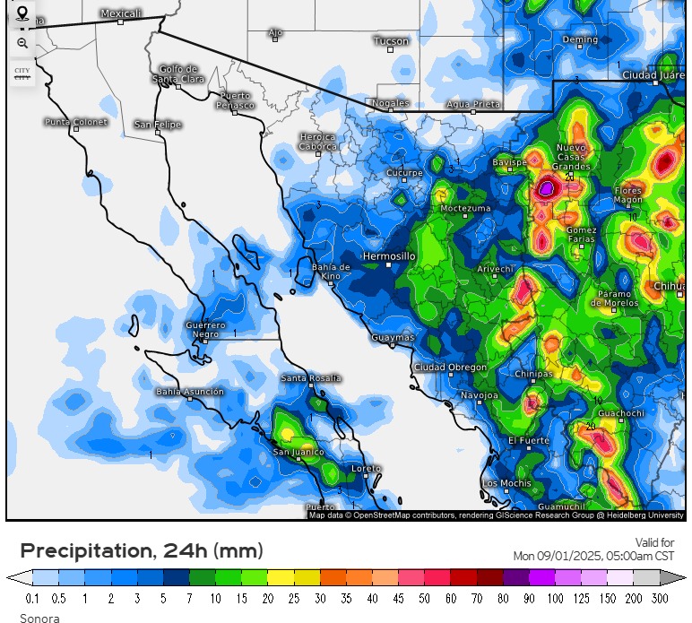 Asimismo, se prevé un ambiente de caluroso a muy caluroso con temperaturas máximas entre 40 a 45°C sobre el noroeste y centro de la entidad Sonorense.