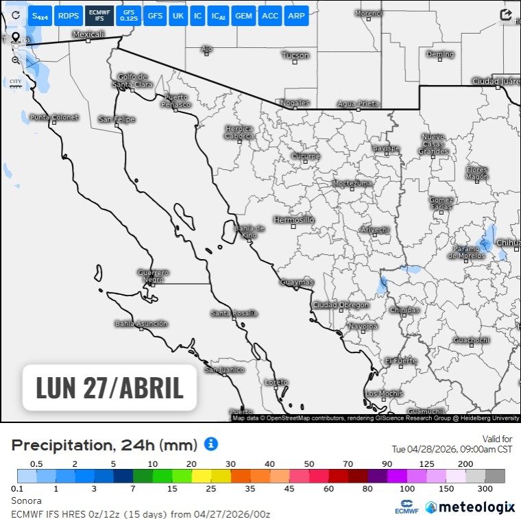 Durante el viernes, una circulación ciclónica se aproximará al noroeste del país y al interaccionar con la humedad proveniente del Golfo de California originará lluvias ligeras a moderadas sobre el norte y noreste de Sonora.