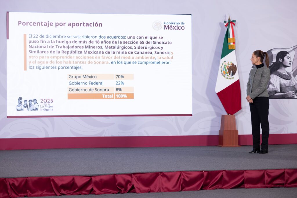 “A inicios del próximo año, enero, empieza la construcción de todas estas obras, digamos que está el acuerdo y ahora viene de nuestra parte la construcción de hospitales, obras de potabilización, la medición de la contaminación de suelo para poder saber si está contaminado, en dónde y hacer el proceso de remediación. Vamos a seguir informando cómo va este proceso de construcción, pero esperamos que todo esté listo en el 2026”, destacó en la conferencia matutina: “Las mañaneras del pueblo”.