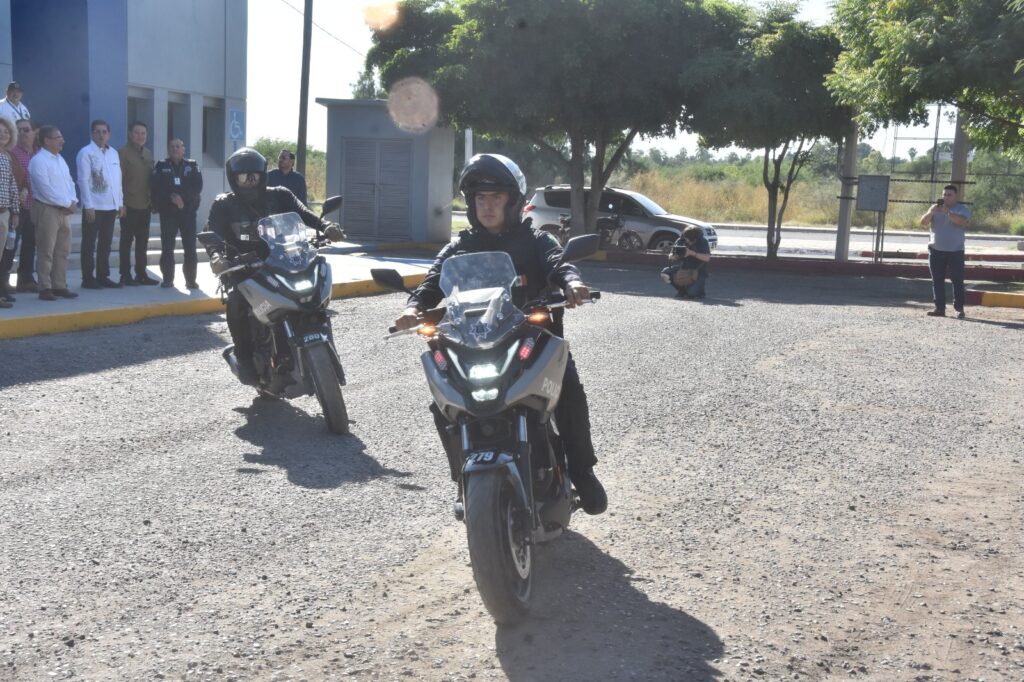 Navojoa, Sonora, 3 de noviembre 2025.- Dentro del plan estratégico de una más pronta y eficiente respuesta a los navojoenses en los llamados de emergencias, el alcalde Jorge Alberto Elías Retes entregó este lunes siete moto patrullas a la Comisaría de Seguridad Pública, equipamiento con una inversión de 1 millón 750 mil pesos, propia del ayuntamiento.