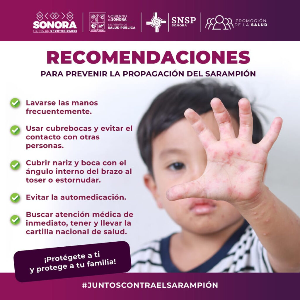La Secretaría de Salud de Sonora mantiene acciones preventivas del sarampión a través de sus Escuadrones Básicos Territoriales, , encargados de implementar cercos sanitarios y vacunación focalizada, a fin de contener posibles casos y prevenir su propagación.