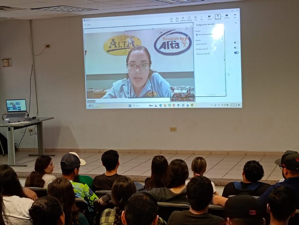 Agradeció a Teresita de Jesús López Peralta, quien impartió el foro informativo y compartió detalles esenciales sobre la operación de Grupo ALTA, así como de los requisitos y oportunidades que ofrece a los estudiantes interesados en realizar sus estadías profesionales.