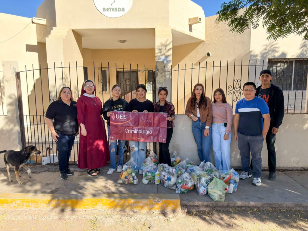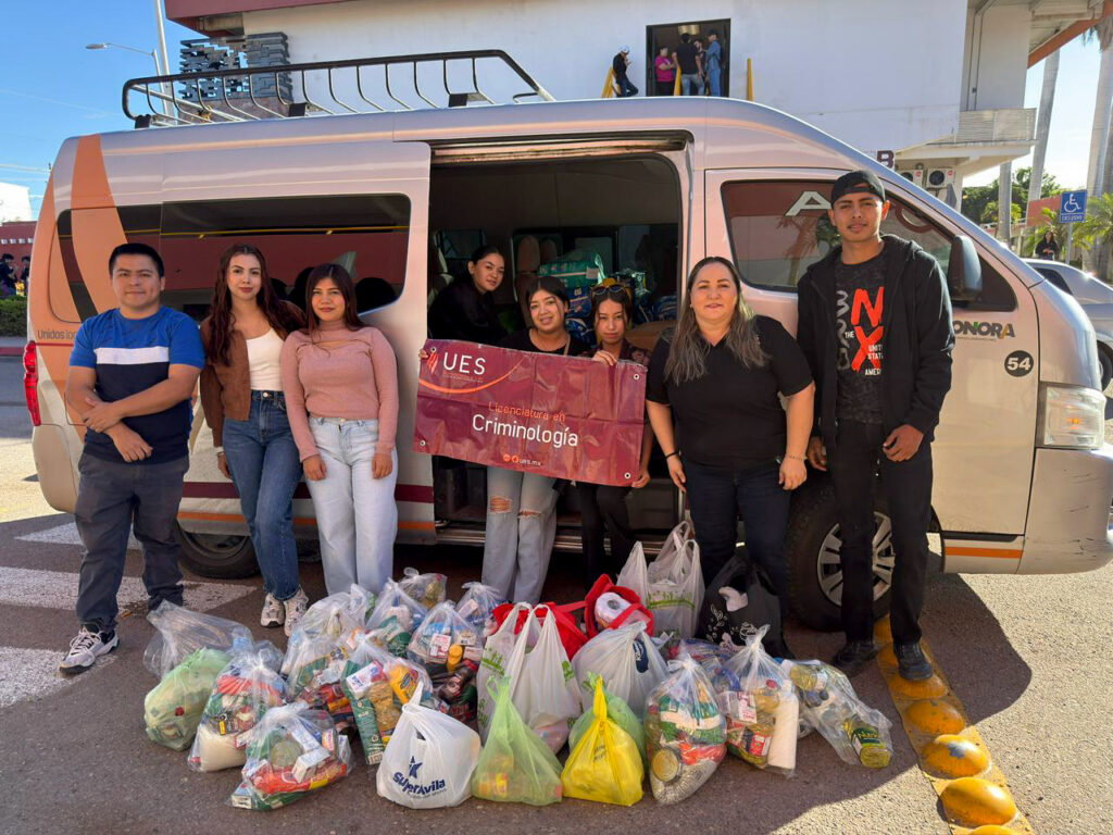 Estudiantes de Criminología y otros programas educativos de la Universidad Estatal de Sonora (UES) Navojoa, entregaron de despensas a diferentes instituciones de la ciudad.