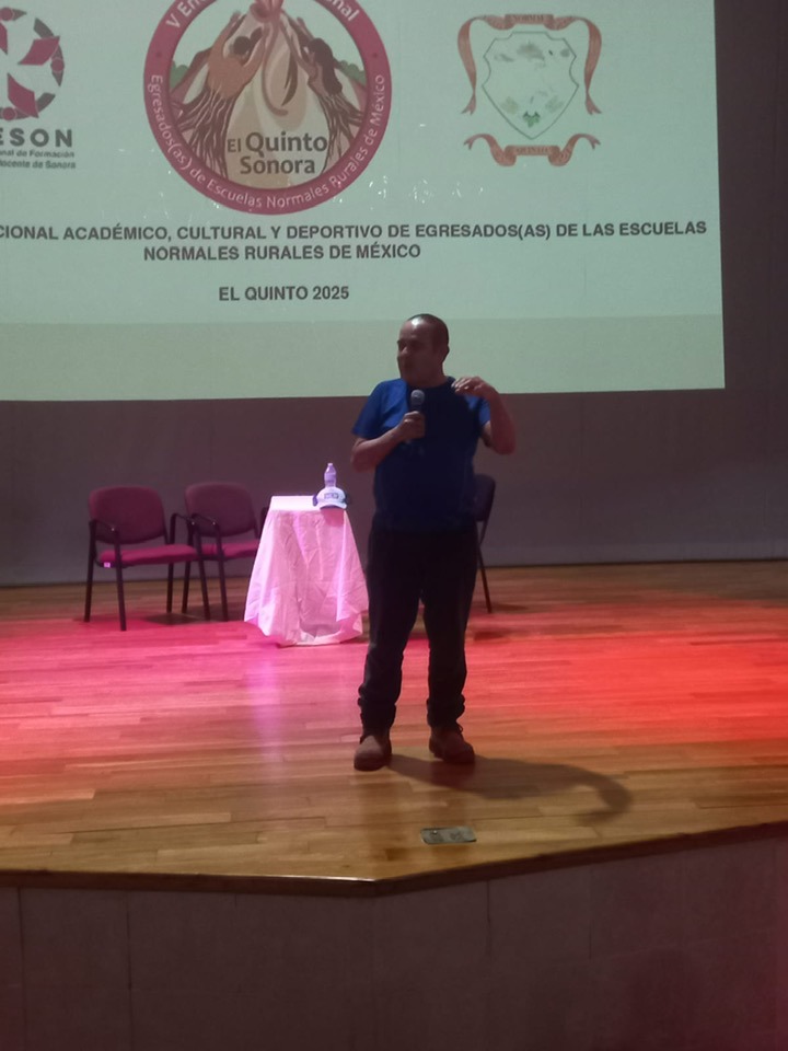 El sinaloense participó en el V Encuentro Nacional de Maestros Normalistas Rurales, del cual “El Quinto” es sede, y que el sábado llevó al Palacio Municipal de Álamos con un evento cultural en la Explanada del lugar, teniendo como invitado al alcalde Samuel Borbón Lara.