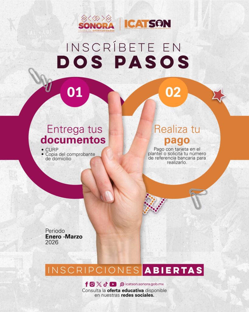 El Instituto de Capacitación para el Trabajo del Estado de Sonora (Icatson), informa a la ciudadanía que debido a la alta demanda de interesados en sus cursos, se extiende el período de inscripciones hasta el sábado 17 de enero.