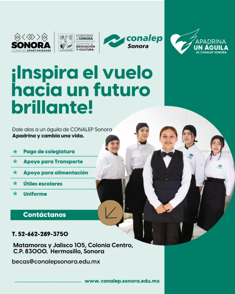 El Colegio de Educación Profesional Técnica del Estado de Sonora (Conalep Sonora) reforzó su campaña permanente de becas “Apadrina un Águila”.