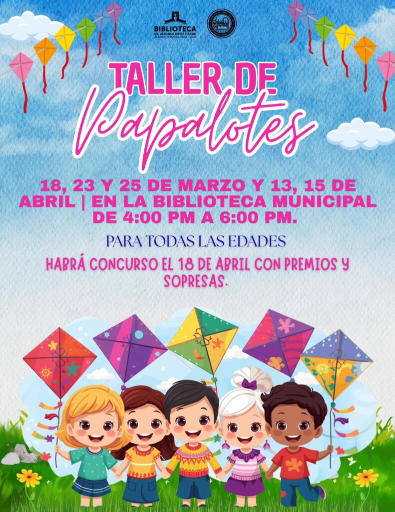 Con el objetivo de promover la creatividad, la sana convivencia y el rescate de actividades recreativas tradicionales, Ayuntamiento de Álamos, en coordinación con la Biblioteca Pública Municipal, impartirán un “Taller y Concurso de Papalotes”.