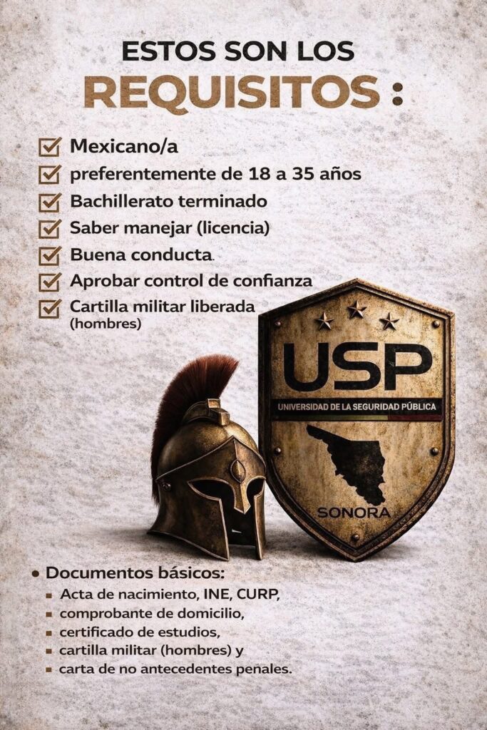 La Secretaría de Seguridad y Protección Ciudadana (SSPC) Sonora, a través de la USP, estará presente en los municipios de Nogales y Agua Prieta para reclutar perfiles que deseen prepararse académicamente como parte de la generación “Esparta”.
