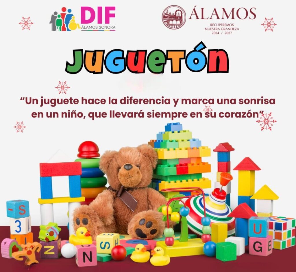 El alcalde de Álamos, Samuel Borbón Lara, y la presidenta de DIF local, Patricia Valenzuela, llamaron a la comunidad alamense a seguir apoyando la campaña de recopilación de juguetes “Juguetón” y hacer feliz a niños vulnerables en Navidad.