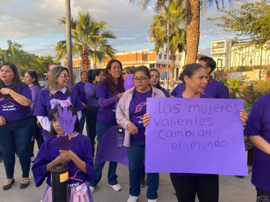 En la caminata pacífica participaron empleadas de diversas dependencias municipales, personal del C4 Navojoa y estudiantes de la Universidad Novohispana y del área de Enfermería de la Universidad Estatal de Sonora (UES).
