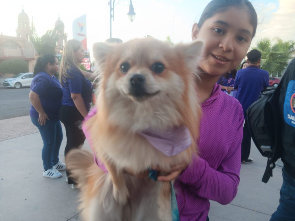 Hasta “Pafe” y “Leyla”, dos perritas de raza Pomerania, participaron en la caminata que realizaron funcionarias municipales y alumnas de educación superior de la ciudad.