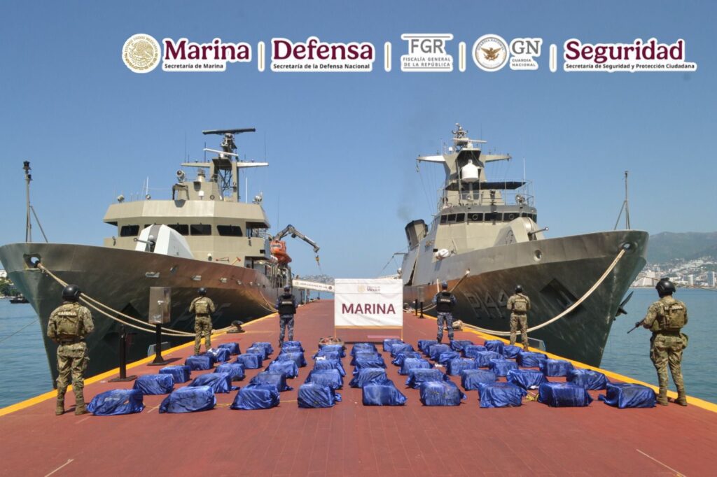 Como parte de las acciones para impedir que sustancias ilícitas lleguen a las calles, en una operación en la mar, frente a costas de Guerrero, elementos de la Secretaría de Marina (Semar) a través de la Armada México en funciones de Guardia Costera, como parte del Gabinete de seguridad que está integrado por las Secretarías de la Defensa Nacional (Defensa), de Seguridad y Protección Ciudadana (SSPC), Guardia Nacional (GN) y Fiscalía General de la República (FGR), aseguraron aproximadamente 1,600 kilos de cocaína en mar abierto, al suroeste de Acapulco, Guerrero.