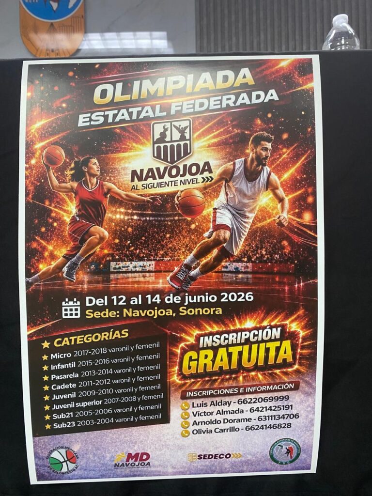Navojoa será sede del 12 al 14 de junio de la Olimpiada Estatal Federalizada de Basquetbol, un evento que estiman aportará una derrama económica a la ciudad de aproximadamente 2 millones de pesos, con la participación de 50 equipos de municipios de todo el estado.