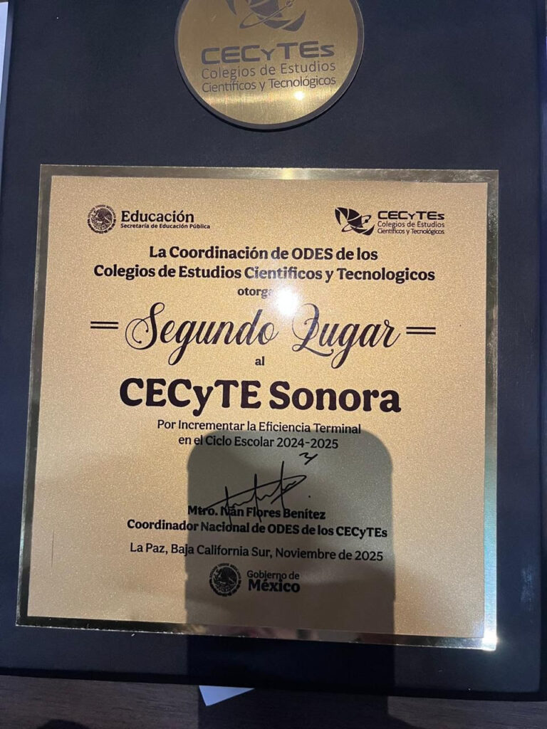 El Colegio de Estudios Científicos y Tecnológicos del Estado de Sonora (Cecyte) obtuvo el segundo lugar a nivel nacional en el incremento de la