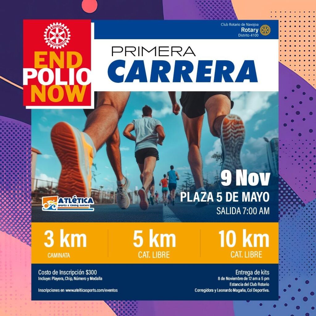 El Club Rotario Navojoa invita participar en su primera carrera “EndPolio” (Pongamos fin a la Polio) a realizarse el 09 de noviembre a partir de las 7:00 horas frente a Palacio Municipal.