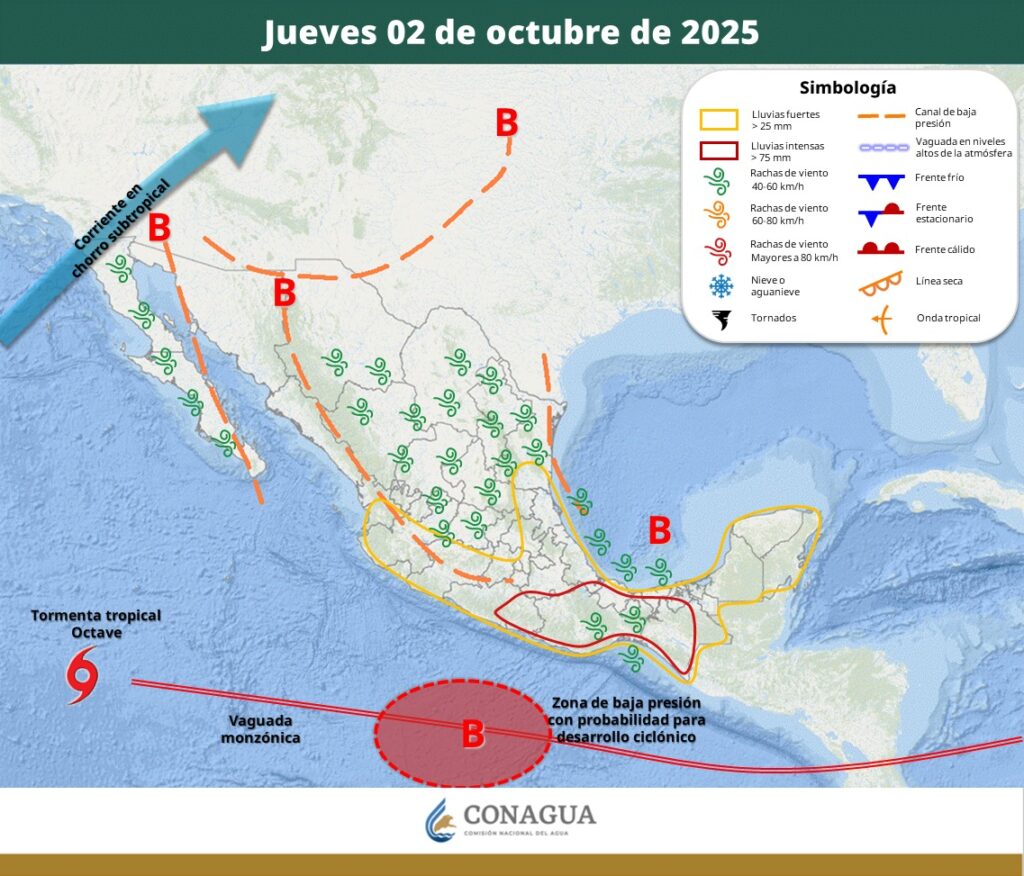 Por su parte, una vaguada en niveles medios y altos de la atmosfera en combinación con la corriente en chorro subtropical podrían generar algunas lloviznas sobre municipios limítrofes con Chihuahua durante horario vespertino.
