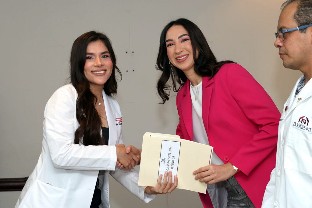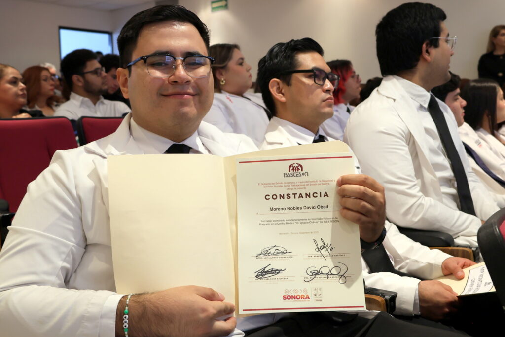 En nombre del director general de Isssteson, Luis Alonso Osuna Cota, el doctor Isidro Ávila Félix, coordinador de Atención Primaria del Instituto, felicitó a los y las estudiantes, instándolos a ofrecer a las personas pacientes una atención digna y cálida en el presente y futuro.