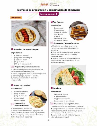 La dependencia educativa estatal detalló que en el portal https://drive.google.com/file/d/10nNAuuef7jQgZ8IQxSKluh3d9H8iZpcq/view se encuentra una gran variedad de opciones de desayunos, comidas, refrigerios y bebidas nutritivas, con el listado de ingredientes y la información necesaria para su preparación y acompañamiento.