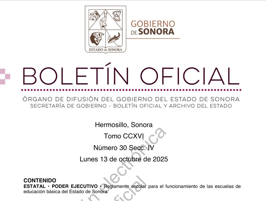 La SEC invitó a consultarlo en el portal https://boletinoficial.sonora.gob.mx/images/boletines/2025/10/2025CCXVI30IV.pdf como parte de la responsabilidad de todos los integrantes de la comunidad escolar y con la intención de promover la participación democrática, la excelencia y la mejora continua en las escuelas.