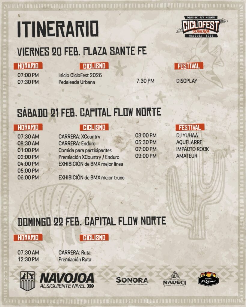 El evento, promovido por el Ayuntamiento de Navojoa, a través de la Secretaría de Fomento Económico y Dirección del Deporte, así como la empresa Capital Flow, Club Pedaleada Urbana Navojoa y OCV Navojoa, se realizará del 20 al 22 de febrero en la pista Capital Flow, ubicada en kilómetro 23 de la carretera Navojoa-Álamos.
