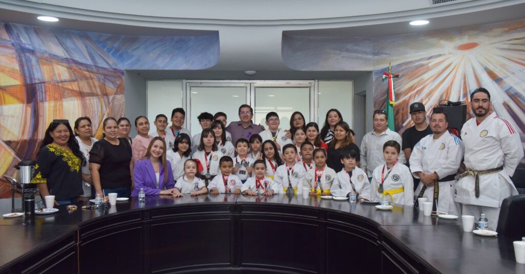 El presidente municipal de Navojoa, Jorge Alberto Elías Retes, recibió a integrantes de la Academia de Karate Do, quienes obtuvieron más de 40 medallas en el Torneo Estatal realizado en Ciudad Obregón.