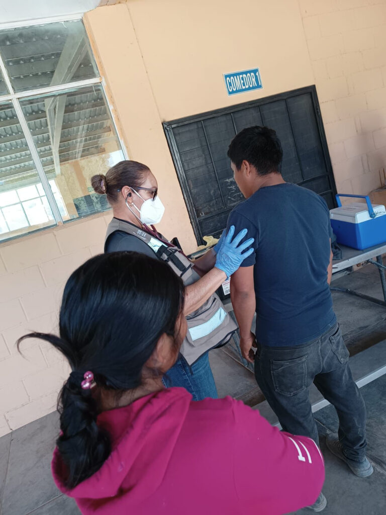 Durante la jornada se aplicaron dosis de SRP (sarampión, rubéola y parotiditis), así como vacunas contra influenza y COVID-19, reforzando la protección individual y colectiva de las y los trabajadores agrícolas.