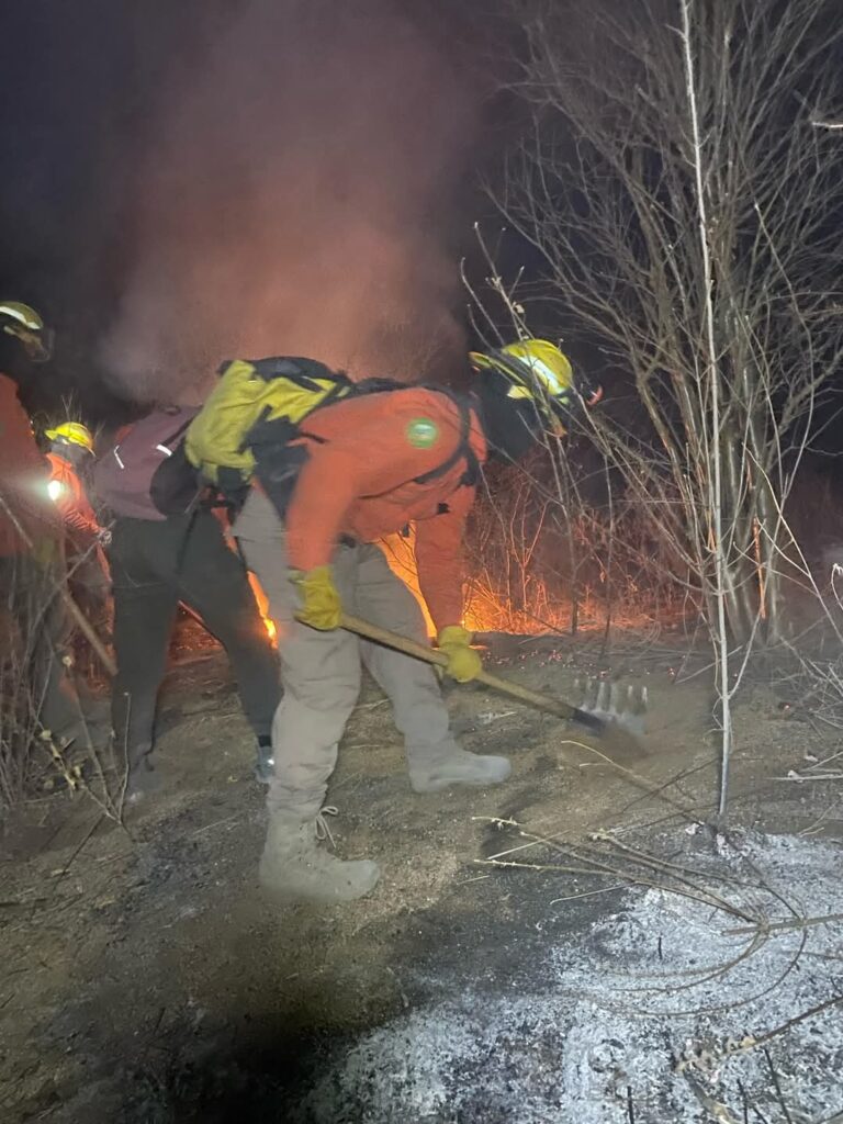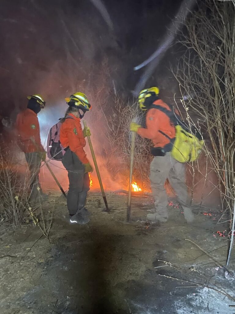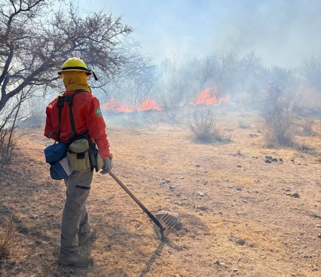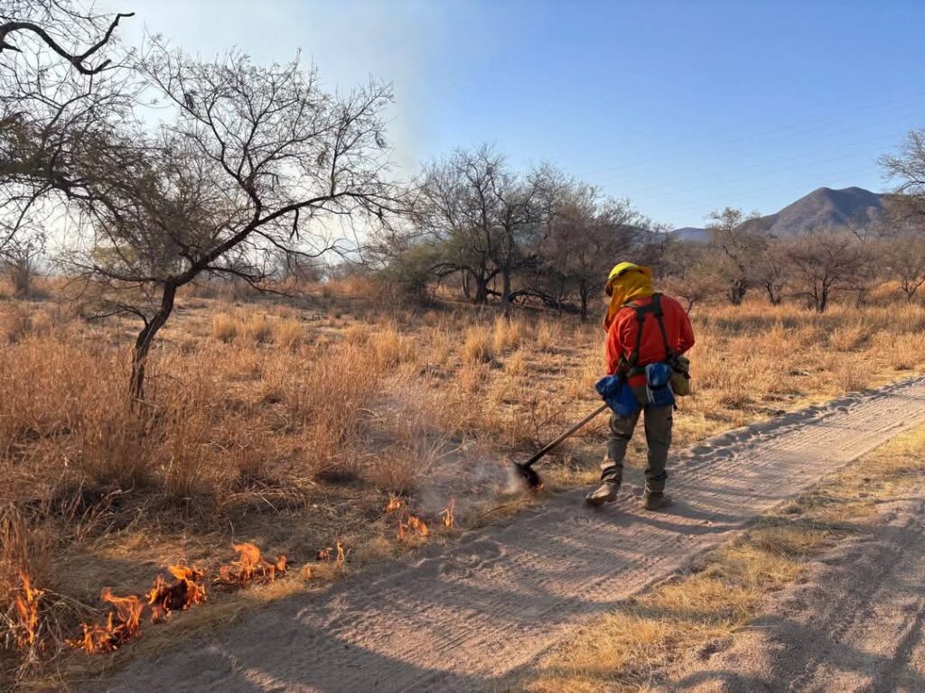 En este incendio forestal trabajan integrantes de la Brigada Estatal de Manejo de Fuego, de Sagarhpa y Protección Civil Sonora, elementos del sector privado con el valioso apoyo de la Comisión Nacional Forestal (Conafor).