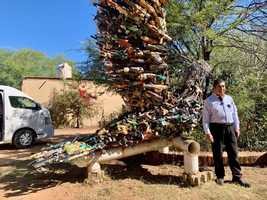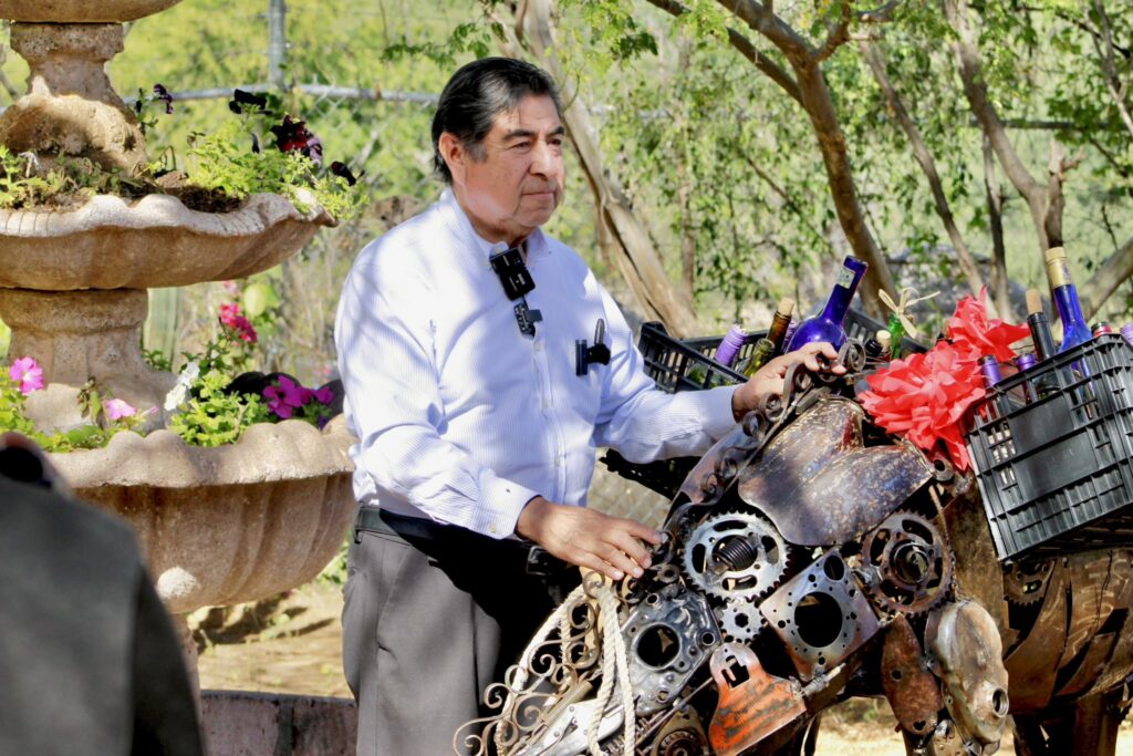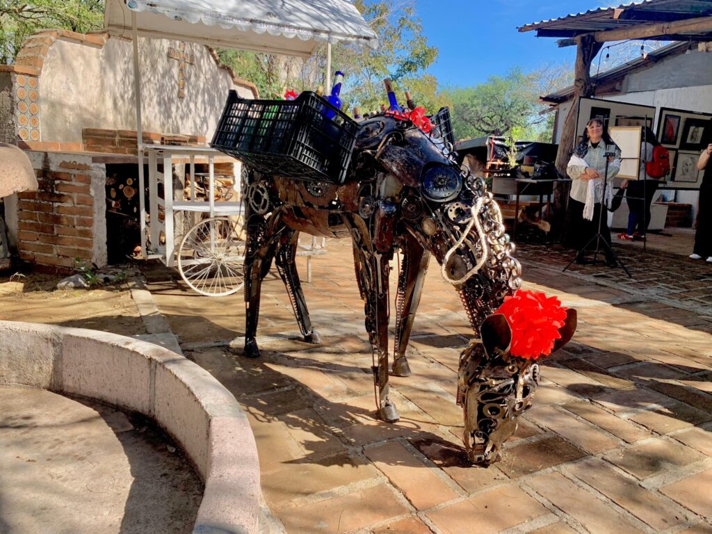 Entre las obras destacadas se encontró: “Gaspar, el burrito que camina en la memoria de Álamos”, cuya elaboración se realizó únicamente con material reutilizado, conocido como fierro viejo, unido mediante soldadura.