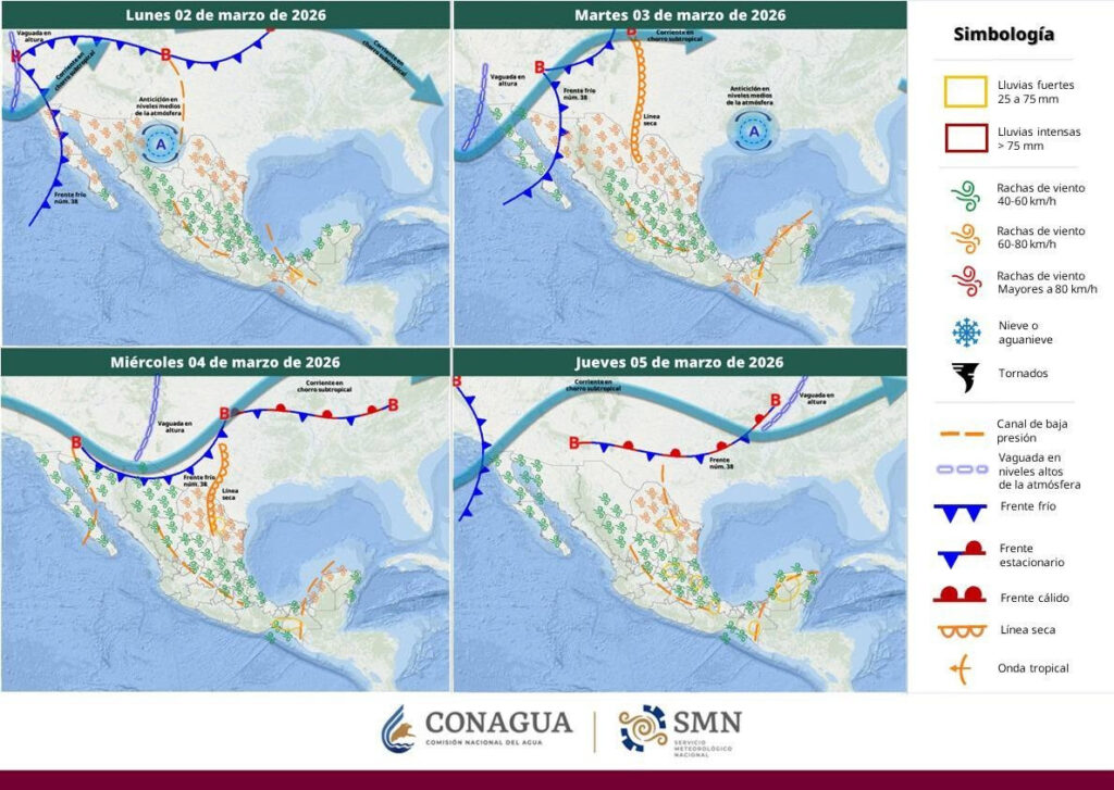 Sin embargo, durante la tarde-noche se prevé la aproximación del frente frío número 38 sobre el noroeste de Sonora, lo que originará un descenso en las temperaturas máximas y un ambiente más fresco durante la noche y madrugada del martes.